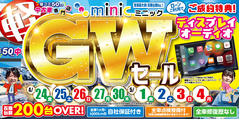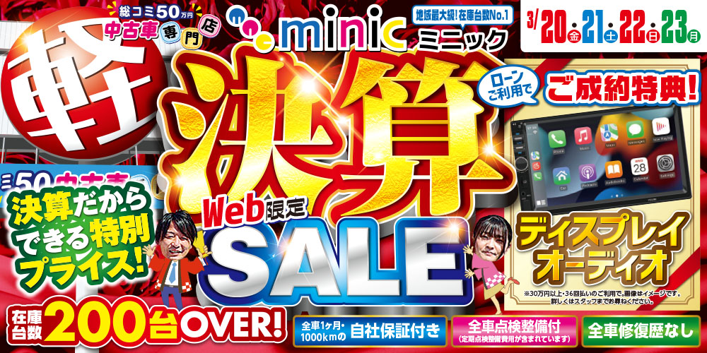 当店は、一宮市・稲沢市・北名古屋市・岩倉市・羽島市・あま市・津島市エリアでもトップクラスの在庫を常時取り揃えています!その数なんと、常時200台超!